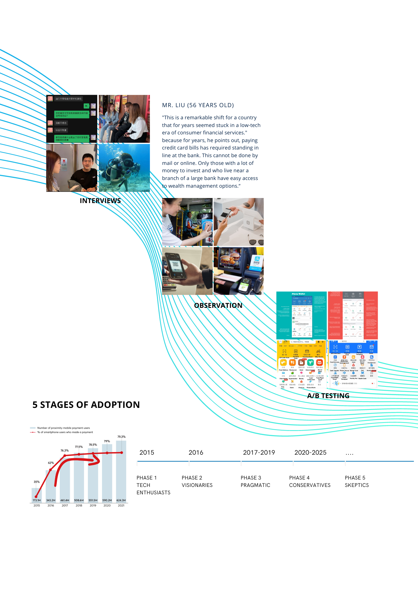 • Observation: Observe people's behavior to understand the real use of Alipay in life;